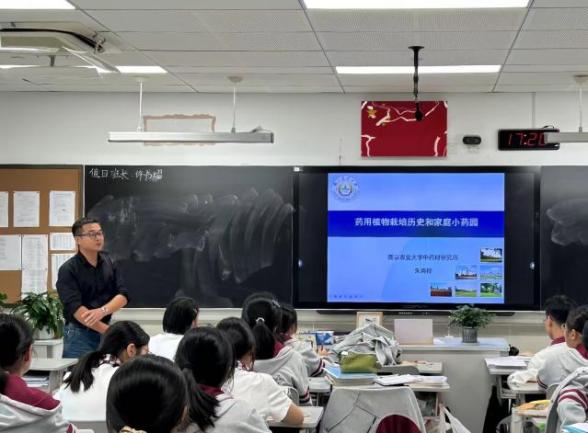 中药教师党支部汪涛、朱再标、邹庆军等老师带头践行“党建促科普”的理念,通过多次线下课程,向南京一中中草药社团同学系统介绍各类中药在我国的分布情况,生动讲解药用植物种植的智慧与现代应用,实践演示野生药用植物保护的专业技能,帮助高中学子构建中草药基础知识框架。